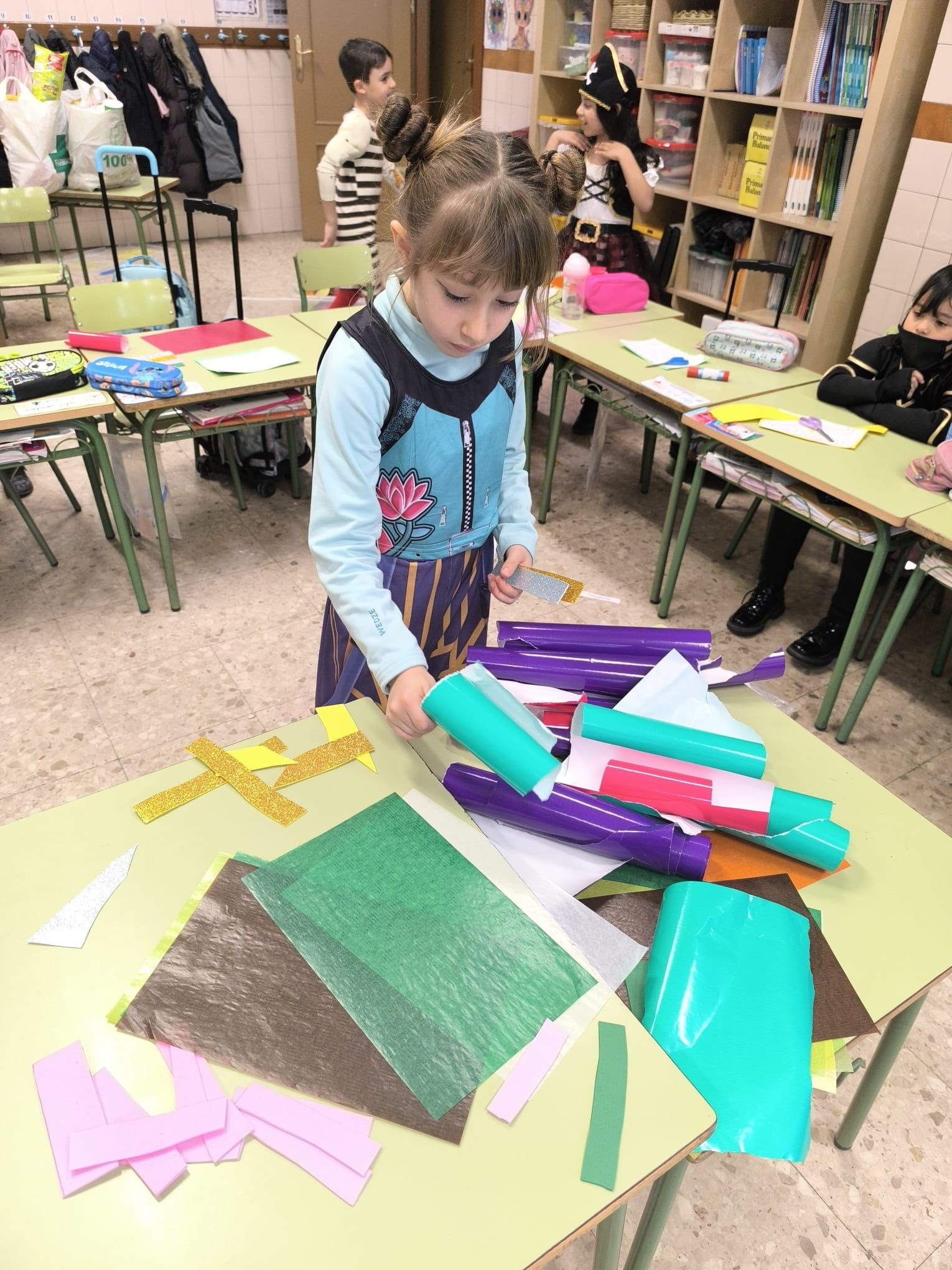 Además, los niños de Infantil y los más pequeños de Primaria han venido disfrazados a clase, convirtiendo el colegio en un auténtico desfile de personajes, colores y sonrisas. Superhéroes, animales, profesiones y personajes fantásticos han llenado las aulas de magia y entusiasmo.