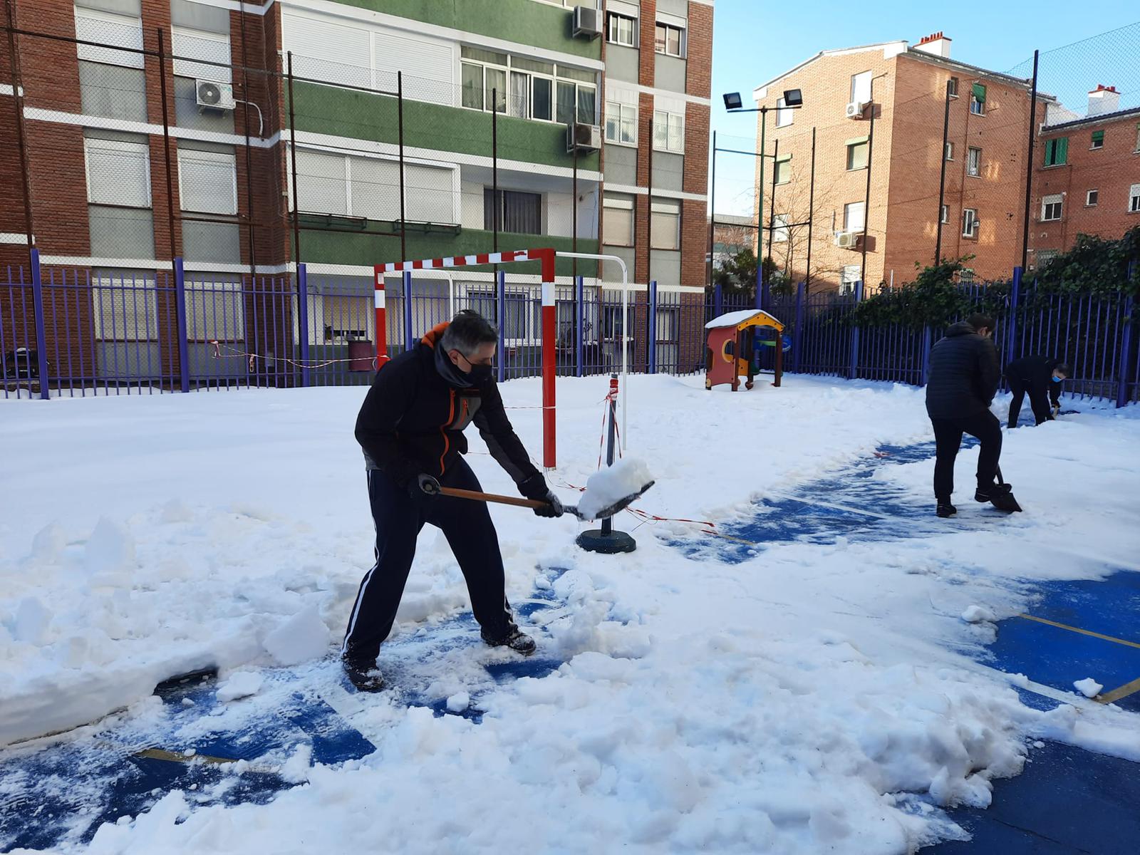 Hoy las familias han ayudado a limpiar la nieve de nuestro colegio.