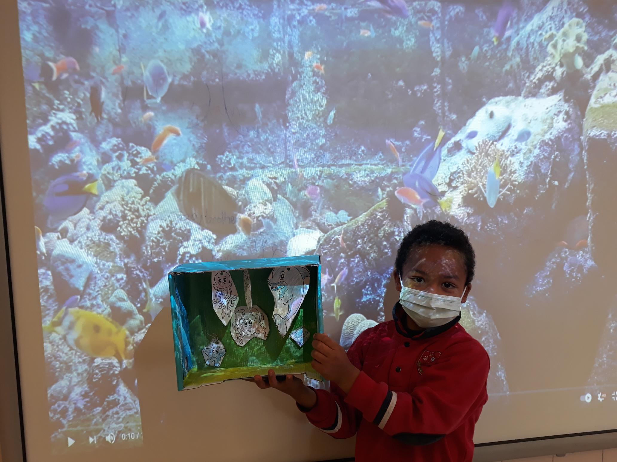 LA SIRENITA - 1º ED. PRIMARIA Los alumnos de 1º de Educación Primaria han hecho este acuario en Plástica para trabajar la película de “La sirenita”.