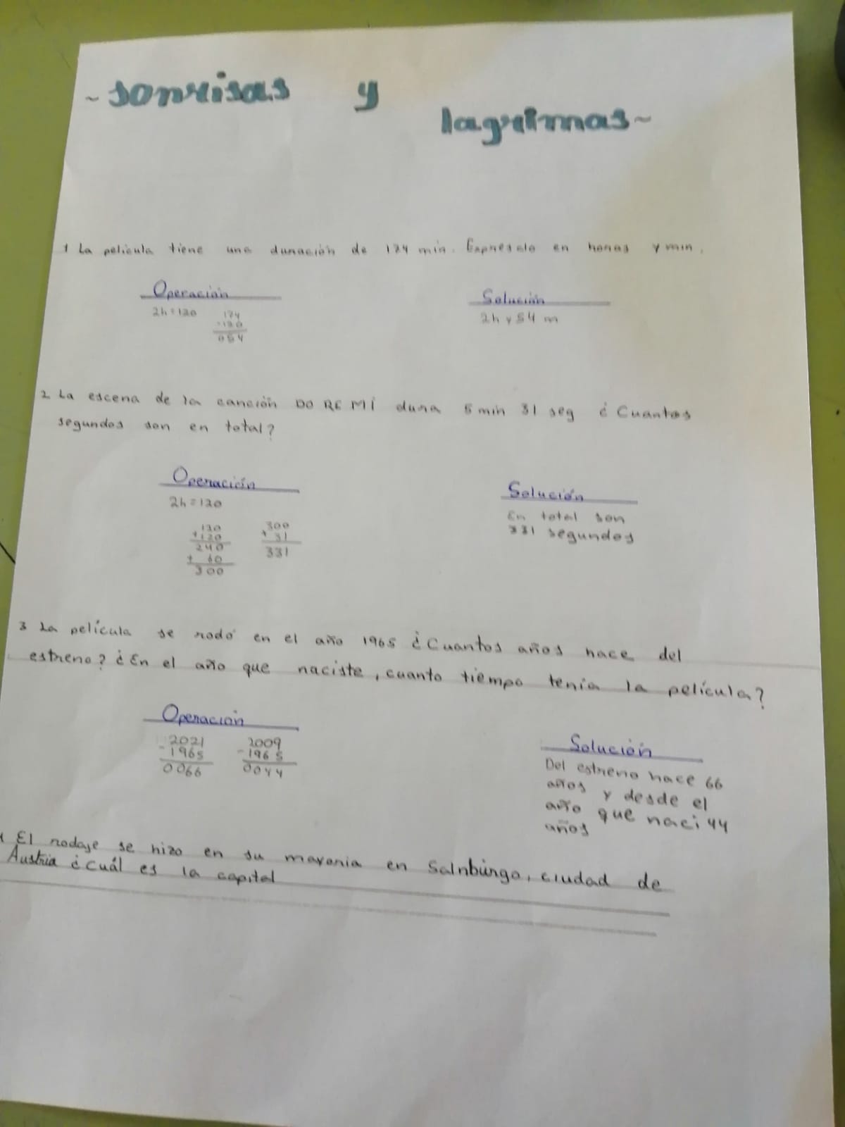 SONRISAS Y LÁGRIMAS - 6º ED. PRIMARIA En clase de mates, hemos usado la película "Sonrisas y lágrimas" para los enunciados de los problemas.