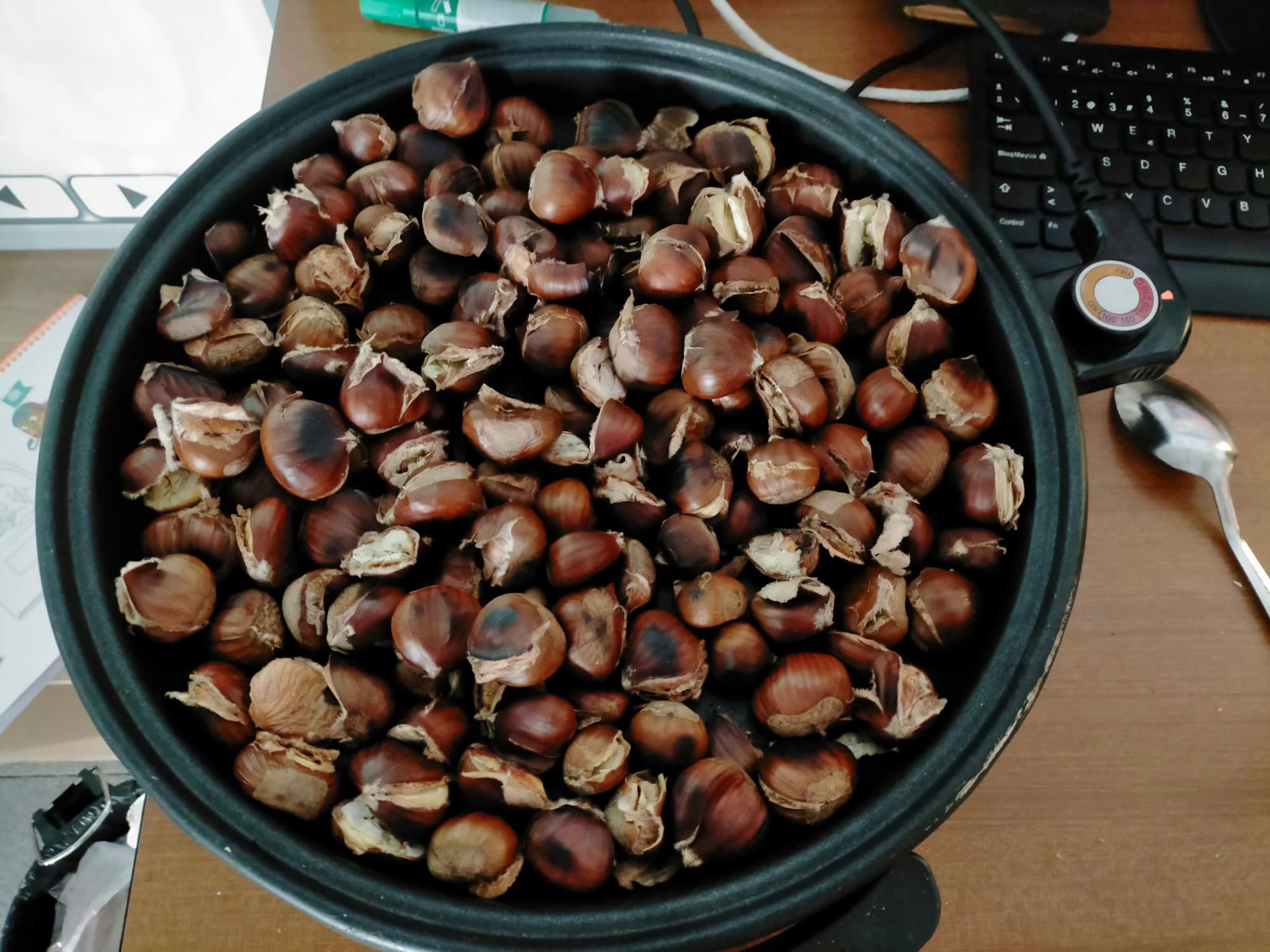 Hemos asado un montón de riquísimas castañas, nos hemos comido unas cuantas y las que han sobrado nos las hemos llevado a casa en un cucurucho que hemos decorado nosotros mismos!!! Que bien nos lo pasamos en el cole!!!