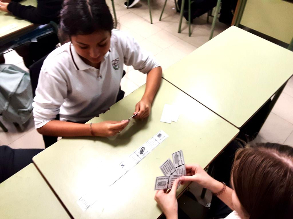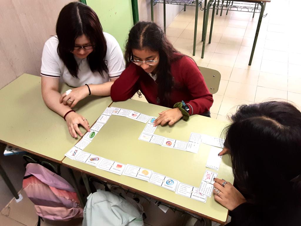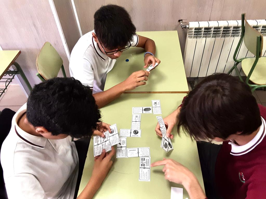 Para repasar las funciones de los orgánulos celulares, en grupos jugamos con un dominó biológico de @larubisco.