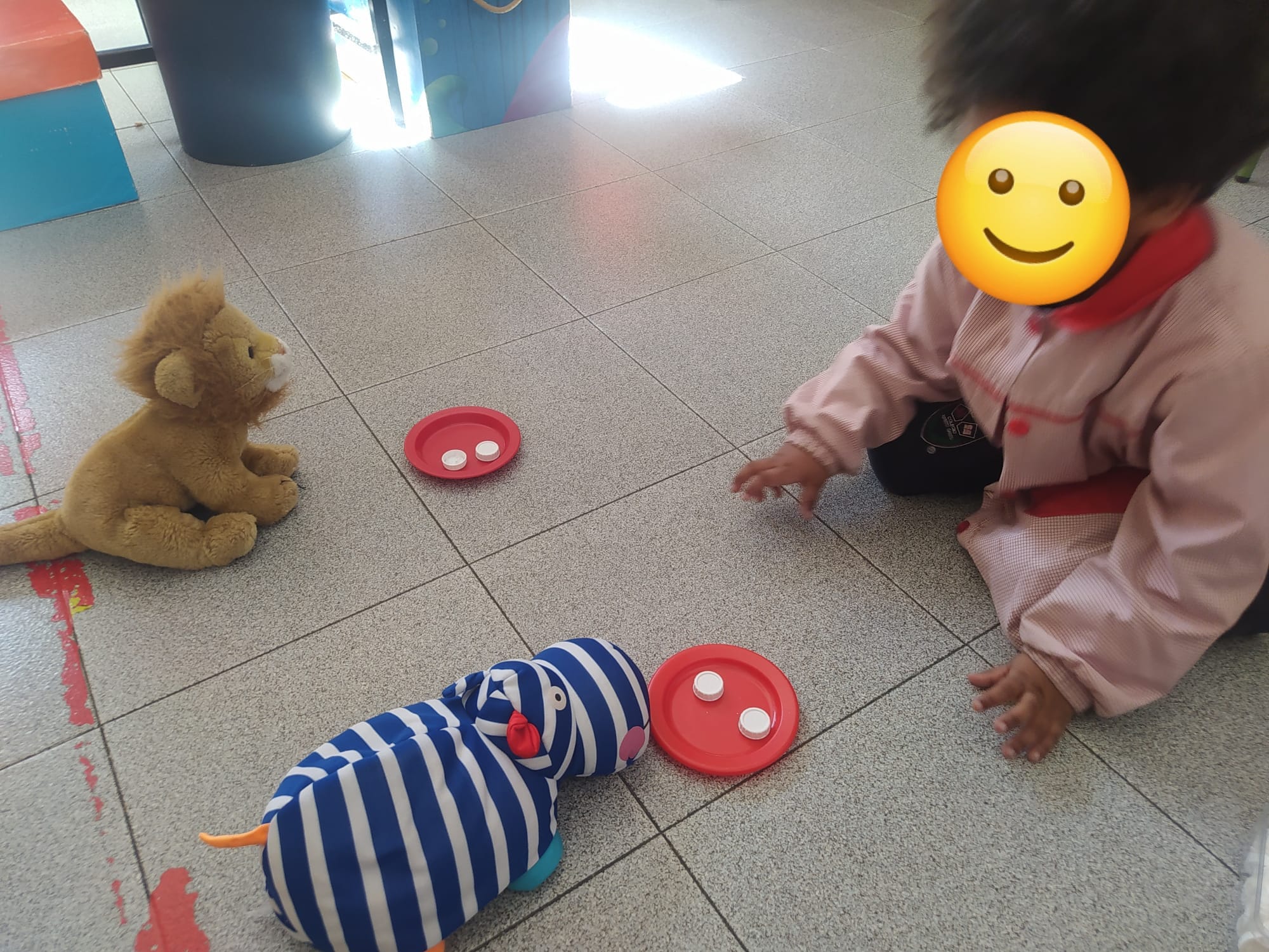 Hoy hemos dado de desayunar a nuestros animalitos de clase y, para que no se quedase ninguno con hambre, hemos dividido por igual la comidita. También hemos contado cuánta comidita se comen entre los dos. ¡Ya somos unos mayores!