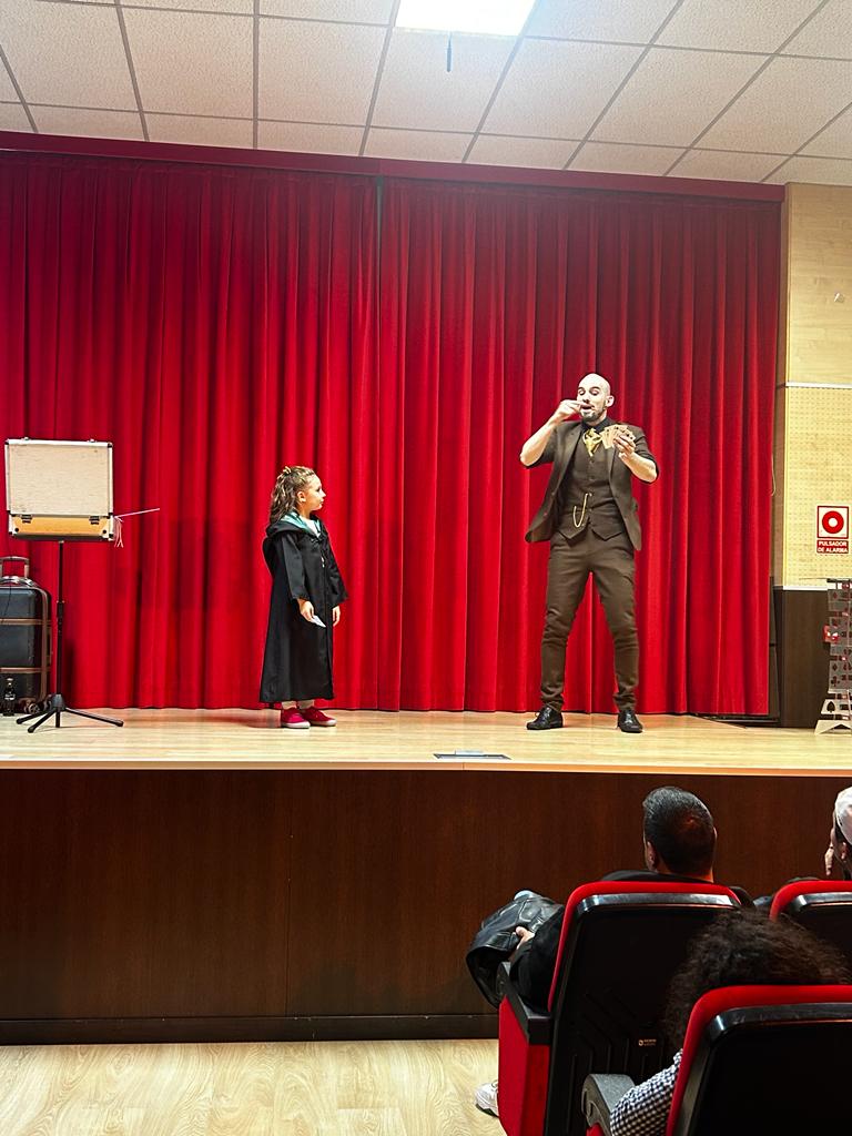 Dentro de las actividades 'de los viernes' (AMPA FRIDAY) que organiza la AMPA del cole, el viernes 24 de noviembre asistimos a un espectáculo de Magia, en el Salón de actos del Colegio.